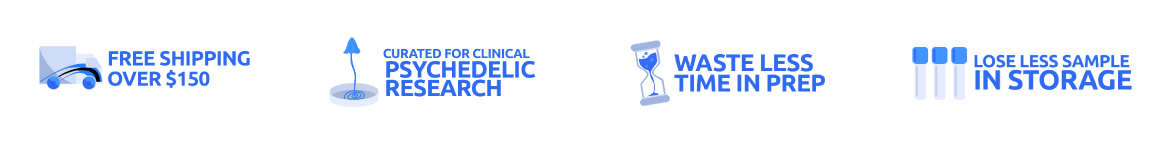 Waste less time in prep. Lose less sample in storage. Everything that bookends your psychedelic research into psilocybin, LSD, MDMA is ready when you are.