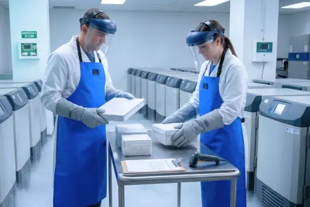 Sample retrieval from liquid nitrogen storage tanks means reaching into or over vessels where LN2 is present. This is exactly the scenario where the apron earns its place - protecting your torso and upper legs during the repeated dipping and retrieval that makes up daily work in a biorepository setting.