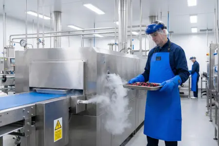 Cryogenic freezing with liquid nitrogen is used in food processing for rapid product freezing and controlled atmosphere applications. Workers handling LN2 in these settings need certified cryogenic protection, not standard cold weather gear.